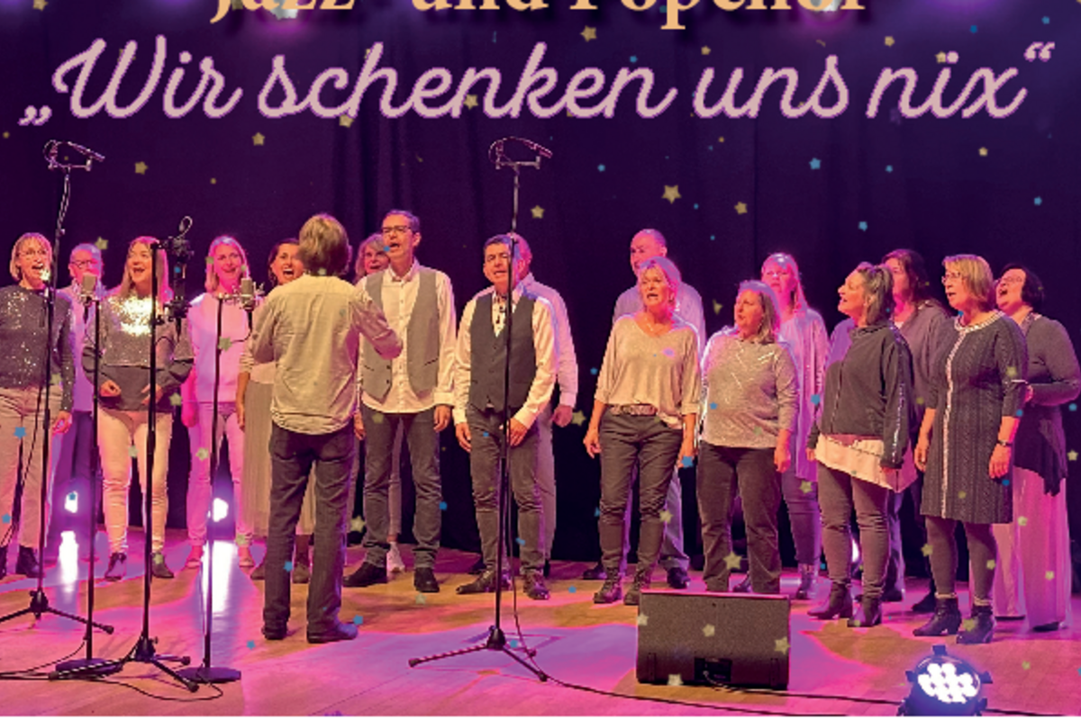 Unter dem Motto „Wir schenken uns nix“ präsentieren die 25 Sängerinnen und Sänger ein abwechslungsreiches Programm – stimmungsvoll und besinnlich aber auch fröhlich, mitreißend und überraschend.
