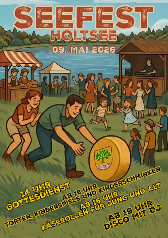 Am 9. Mai wird wieder ein Seefest gefeiert. Das Fest startet um 14 Uhr mit einem Gottesdienst, ab 15 Uhr gibt es Kaffee, Kuchen, Torte und für die Kinder Spiele und Schminken. Das traditionelle Käserollen für Jung und Alt beginnt um 16 Uhr und um 19 Uhr wird die Disco mit einem DJ eröffnet.