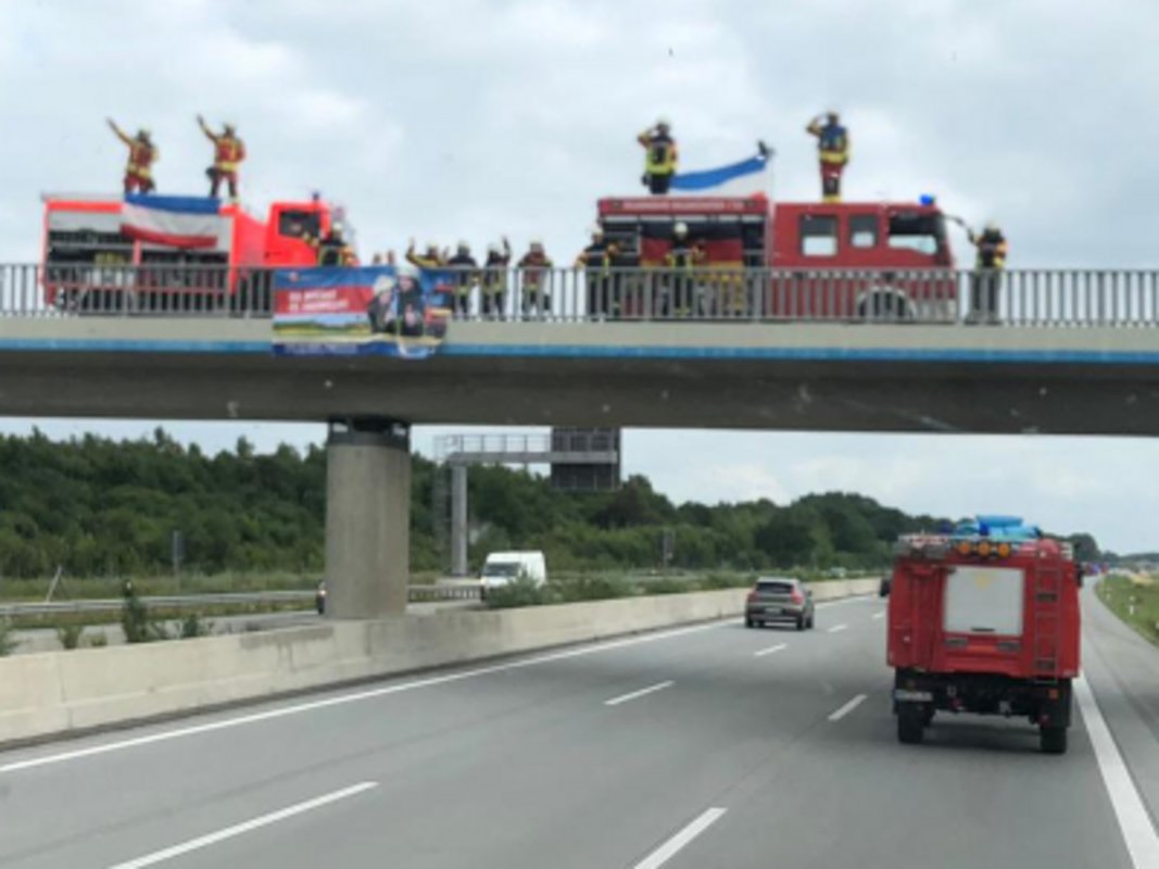 Um 15 Uhr erfolgte der Abmarsch nach Neumünster, wo weitere Bereitschaften dazugestoßen sind. Anschließend marschierte die Kolonne mit dem Ziel Nürburgring nach Süden. Da auf dem Nürburgring kein Platz mehr für die Schleswig-Holsteiner war, wurden sie nach Windhagen im Westerwald zwischen Bonn und Neuwied umdirigiert. Dort konnten Sie in einer Mehrzweckhalle übernachten.