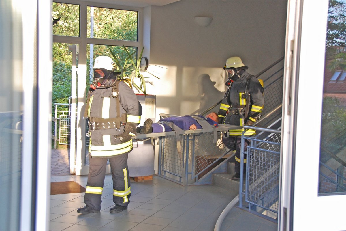 Nachdem die Wehr die Einsatzschutzkleidung angezogen hatte, diese durch die Kommission begutachtet wurde und die Kenntnisse über Feuerwehrknoten und -stiche nachgewiesen waren, zeigte eine Gruppe unter Leitung des Reservegruppenführers Wolfgang Ströh einen Hilfeleistungseinsatz nach einem Verkehrsunfall. Hier galt es, die Unfallstelle abzusichern und eine Person aus dem Fahrzeug zu retten. Da die Holtseer Wehr nicht über hydraulisches Rettungsgerät verfügt, wurde in der Lage davon ausgegangen, dass sich die Türen des Pkw öffnen ließen und die Person nicht eingeklemmt war.