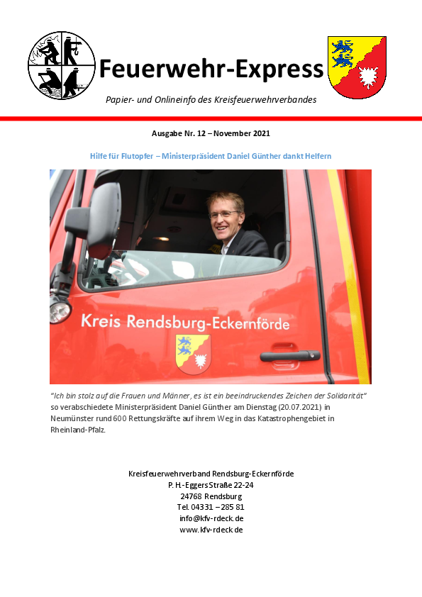 Der Feuerwehr-Express Ausgabe 12 – November 2021 ist erschienen. Es kann über diesen Link beim Kreisfeuerwehrverband heruntergeladen werden.