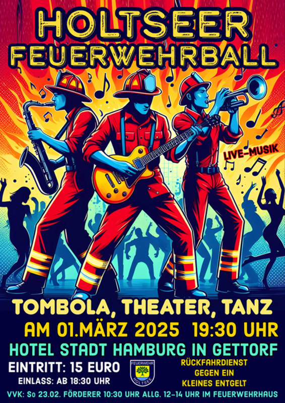 Um 19:30 Uhr begann der Feuerwehrball mit dem Theaterstück „Hochtiedsdaag“. Die Silberhochzeit steht bevor. Allerdings soll an diesem Jubeltag auch der Vereinsausflug der Kegelmannschaft des Ehemanns stattfinden. Eigentlich hat er einiges gutzumachen, schließlich stießen seine Geschenke wie Nudelsiebe, Dosenöffner und Eierwärmer nicht auf Wohlwollen bei der Gattin. In die Suche nach Lösungen seiner Probleme platzt dann die Nachricht, dass sich der Besuch einer Dame ankündigt, mit der er scheinbar ein heikles Erlebnis verbindet. Een Unglück kommt selten alleen! Mehr sei nicht verraten. Das Theaterstück wird Freitag, den 21. März um 19:30 Uhr und Sonntag, den 23. März um 15 Uhr in der Eiderhufe wiederholt (Reservierung erforderlich).